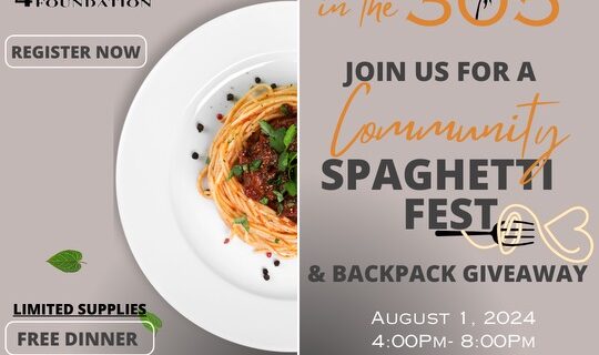 Join Us for a community spaghetti fest and backpack giveaway. Date: August 1, 2024 Cost: Free Location: First St. John Missionary Baptist Church13740 SW 264th St. Pinecrest, FL. 33032